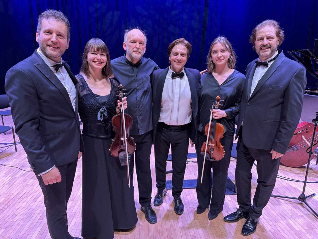 Справа налево: Мауро де Сантис, Ольга Кудаева , Анатолий Щура , Джианлука Паганелли, Кристина Йыелехт, Фабио Андреотти. Фото: Нарвский симфонический оркестр