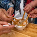 Второй день фестиваля был слегка омрачен дождливой погодой, но привлек не меньшее число зрителей. В Нарва-Йыэсуу каждый мог полакомиться рыбными деликатесами, потанцевать на причале и прокатиться на парусных и моторных судах по речной акватории.