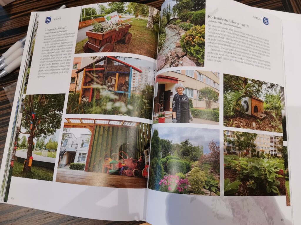 В красочном альбоме «Красивый дом Эстонии 2024» Нарва представлена четырьмя объектами: садовый участок Okka tn 43, КТ Tallinna mnt 59, общественное пространство «5-кроновый вид», детский сад Käoke. Фото: Светлана Зайцева
