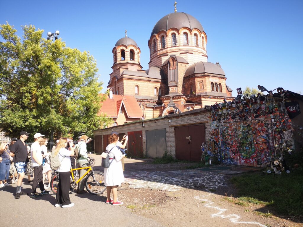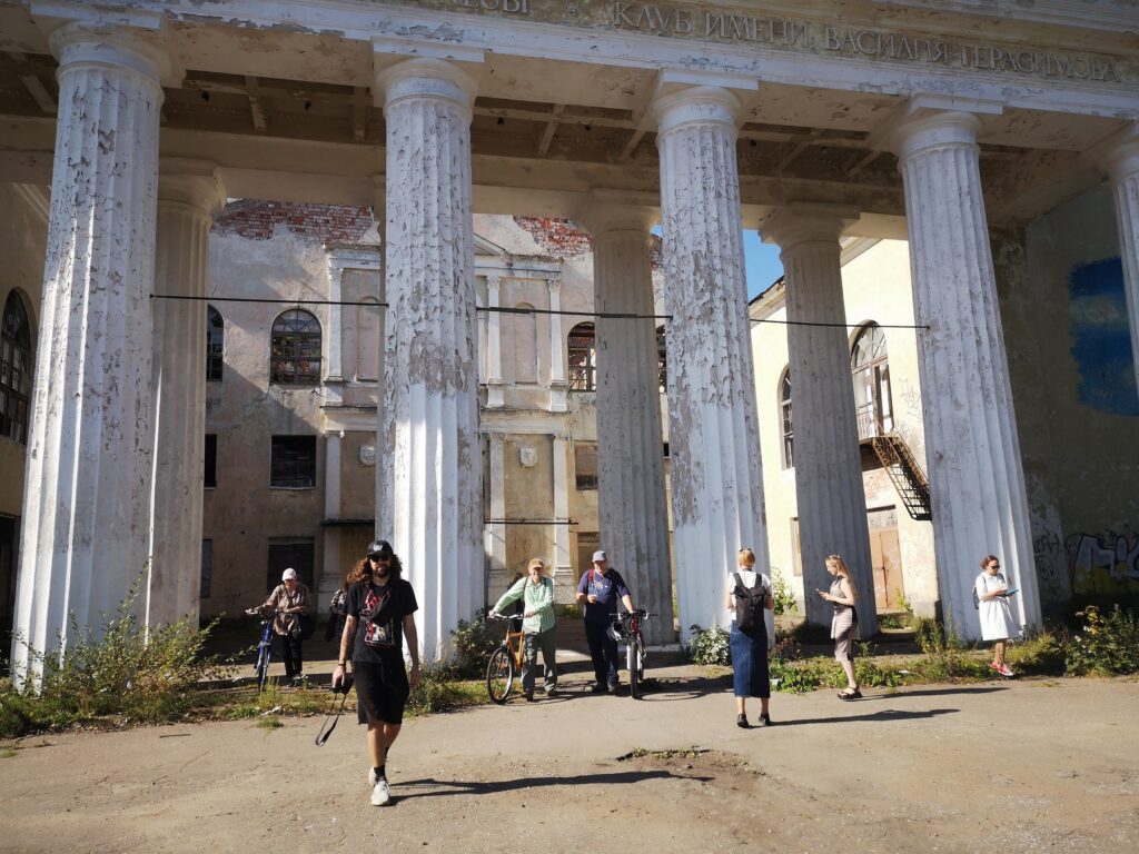 Действительно, участники расслаблено ходили от объекта к объекту, делали фото и просто отдыхали. После улицы Пушкина экскурсанты прошлись по дворам до Воскресенского собора, перешли железнодорожный мост и оказалась в парке Герасимова у заброшенного Дворца культуры. Затем познакомились с необычными видами Кренгольмской мануфактуры и зданием больницы. Фотографировали вывески, крышки люков и памятные таблички на домах, искали интересные ракурсы. В конце экскурсии всем подарили открытки с видами тех мест, по которым они недавно прошли.