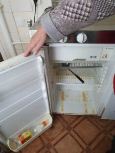 «Все лето проходила вот в этих тряпичных чунях, хотя было жарко. Мы давали ей сандалии, трусы и носки. Приносили фрукты – ей очень нравится виноград, арбуз, но опекун ей этого ничего не покупает. Да и вообще никакой еды в доме часто нет, кроме той, что привозят в обед социальные работники. Мы сами приносим ей еду», – рассказывают женщины. Но холодильник у Марии давно сломан, поэтому пища быстро портится.