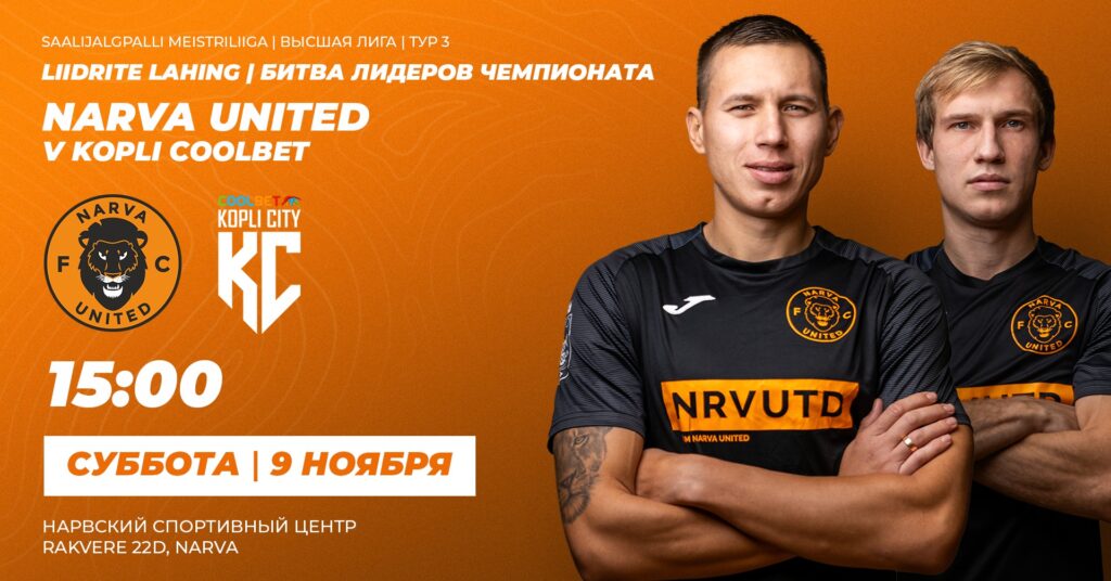 ЧТО? Футзал. Битва команд, возглавляющих на данный момент таблицу чемпионата Эстонии в высшей лиге: Narva United FC – Kopli Coolbet.