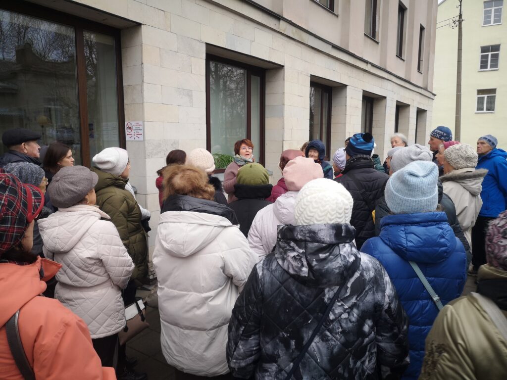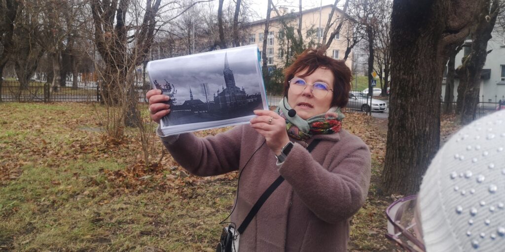 Несмотря на ветреную осеннюю погоду, на экскурсию собралась полная группа. Начался маршрут от Нарвской центральной библиотеки, оттуда участники экскурсии двинулись к Нарвскому замку, затем – в Старый город и закончили маршрут у лестницы Гана. В общей сложности экскурсанты прошли более 5 километров и побывали в 10 местах, где до Второй мировой войны находились храмы.