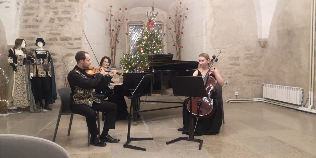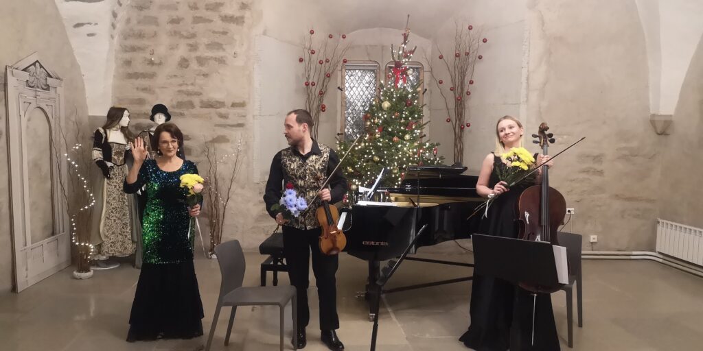 Субботним вечером в празднично украшенном концертном зале Нарвского замка прозвучали произведения известных композиторов – Шуберта, Элгара, Бриджа, Пьяцоллы. Их исполнило трио скрипача Лиама Кеннелли, виолончелистки Ольги Раудонен и пианистки Пии Паемурру.