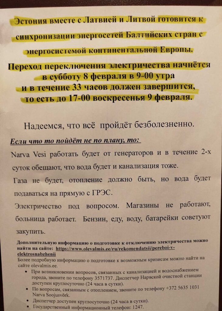 Однако, как пишут официальные государственные источники, стоит учитывать, что в период переключения электроснабжение Эстонии будет более уязвимым, чем обычно, и технические неполадки никогда не исключены полностью.