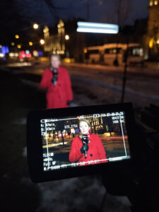 N-TV – круглосуточный новостной канал (можно сказать, немецкий Euronews), а Auslandsreport – один из краеугольных камней эфира. Программа у нас насыщенная, в будущем она станет трафаретом для любых репортажей из Нарвы: встреча с мэром, общение с людьми на улице, интервью с местным активистом. За три дня Крейвальд 4 раза выходит в прямой эфир несмотря на пронизывающий ледяной ветер, мы проводим съемки с дрона, постоянно пытаемся развить сюжеты. В перерывах между беготней по городу и поездками в Таллинн и обратно монтируем и отправляем в редакцию сюжеты.