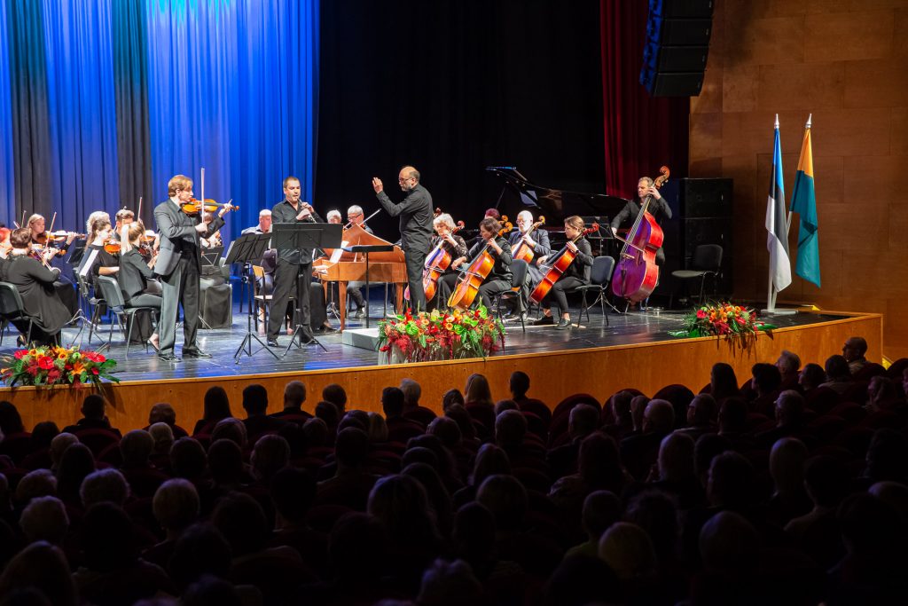 Так назывался этот концерт, соединивший три столетия, высветивший несколько граней развития музыкального искусства и представивший различные его направления и жанры. В этом году оркестр предстал в камерном составе, с преобладанием струнных инструментов, имеющих, как известно, мягкое теплое звучание. Впечатляющим был дуэт солистов – концертмейстера оркестра, его первой скрипки Сергея Тютюника, с которым публика уже хорошо знакома, и впервые выступающего в Нарве гобоиста Дмитрия Булгакова, лауреата международных конкурсов и фестивалей. Оркестр воздал дань памяти и восхищения известному эстонскому композитору Яану Ряэтсу, сыграв три части его «Концерта для камерного оркестра». Нарвский оркестр был дружен в этим композитором, помнит замечательные совместные авторские вечера, где звучала музыка Яана Ряэтсу. Также оркестр почтил и память культового итальянского композитора и дирижера Эннио Морриконе, исполнив тему из фильма «Миссия» и знаменитый саундтрек к фильму «Профессионал». Эти произведения обрели в трактовке Нарвского симфонического оркестра особое трогательное звучание.