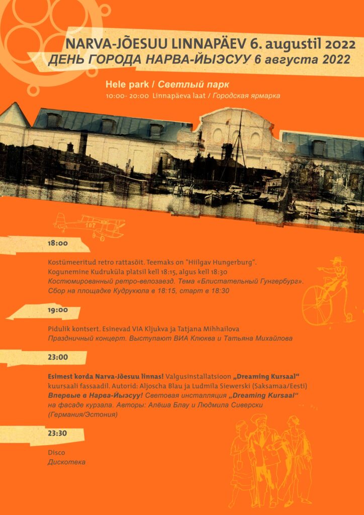 23:00 Впервые в Нарва-Йыэсуу! Световая инсталляция „Dreaming Kursaal“ на фасаде курзала. Авторы: Алёша Блау и Людмила Сиверски (Германия/Эстония)