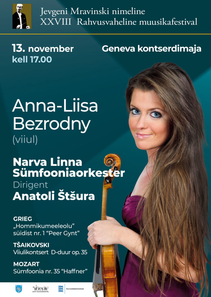 В сопровождении Нарвского симфонического оркестра под управлением Анатолия Щура выступит всемирно известная эстонско-финская скрипачка Анна-Лиза Безродная, которая исполнит знаменитый Концерт для скрипки с оркестром Петра Ильича Чайковского.