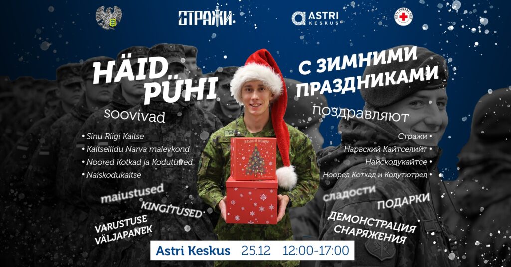 ЧТО? Праздничная инфоярмарка обороны. Стражи, Нарвский Кайтселийт, Найскодукайтсе, Нооред Коткад и Кодутютред хотят поздравить гостей и жителей Нарвы с зимними праздниками.