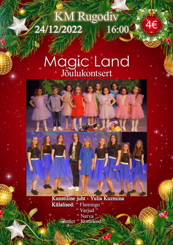 ЧТО? Рождественский концерт Magic Land. В концерте принимают участие творческие коллективы «Фламинго», Нарва», театр «Комиксы», «Varjud».