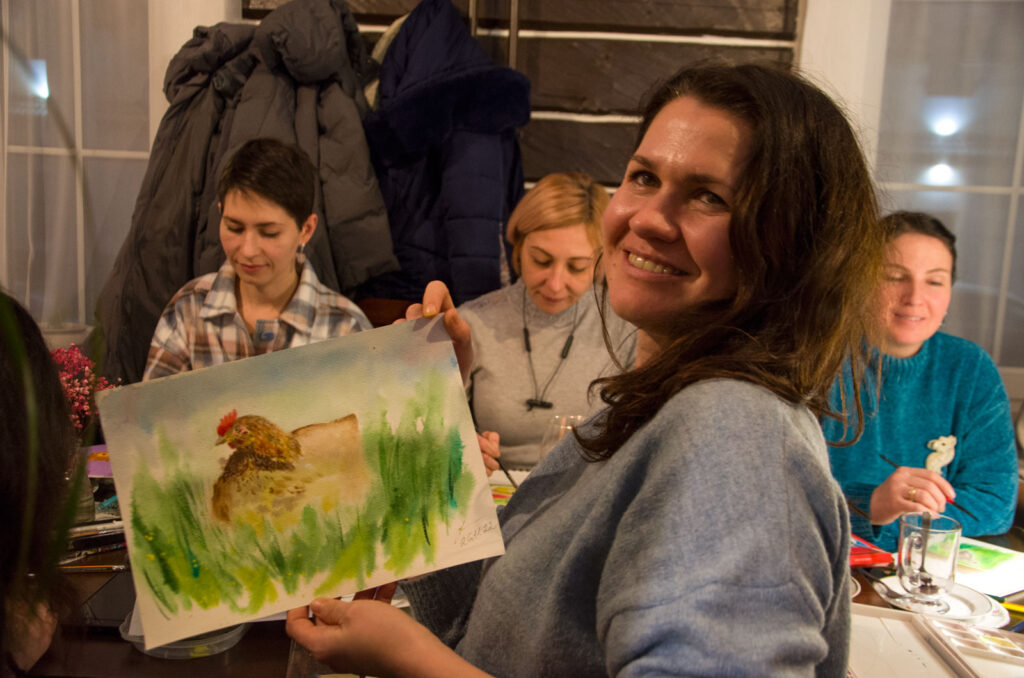 Екатерина Муравьёва, участница Sketchy Seiklus, с рисунком, созданным на встрече в Valge Kõrvits.