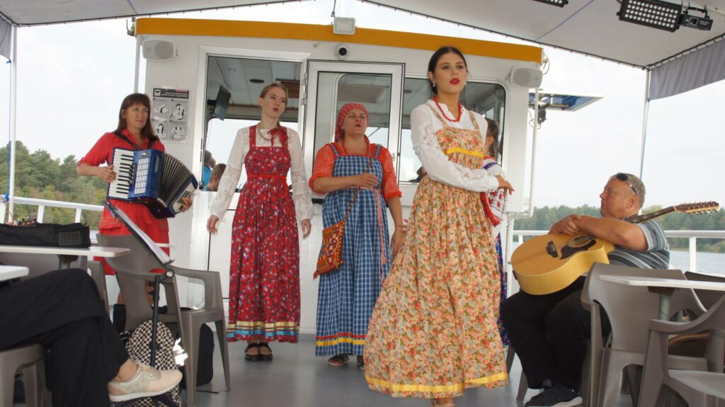 Изюминкой фестиваля в этом году стала прогулка по реке Нарва на кораблике Caroline, во время которой участники исполняли свои песни. Фото: Александр Махов
