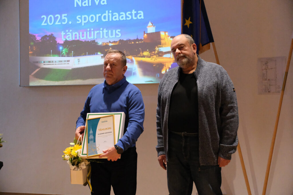 Также на церемонии отметили заслуженных тренеров за многолетний вклад в развитие нарвского спорта. Некоторые из них уже завершили свой тренерский путь, но проработали в Нарве десятки лет и воспитали множество достойных спортсменов. Лучшим тренером 2025 года стал наставник спортивного клуба «Конкиро» Сергей Тимофеев, так как больше всего его спортсменов завоевали почетные звания.