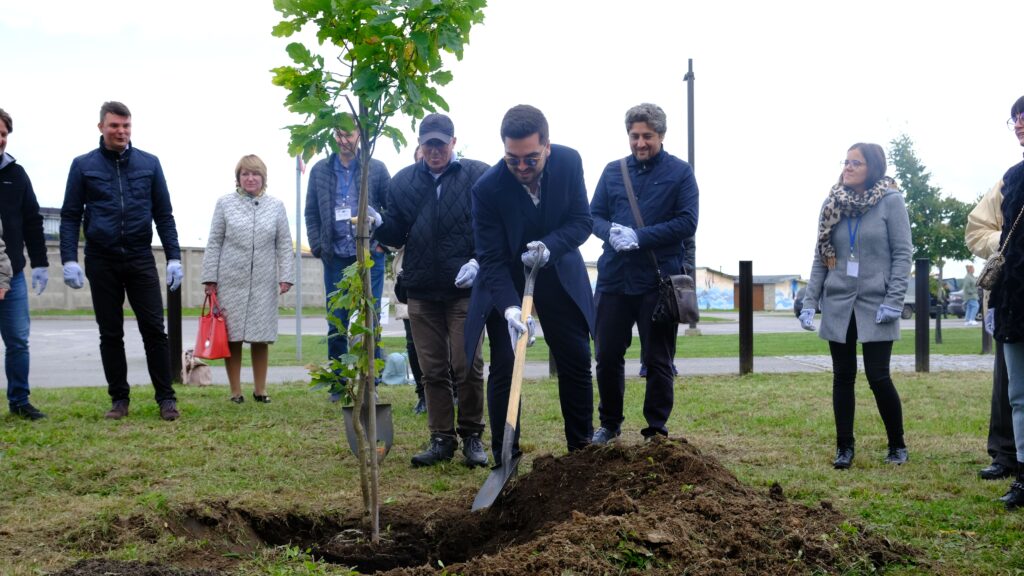 В тот же день представители европейских городов посетили парк EV100, где посадили дерево, познакомились с молодежным центром VitaTiim, побывали в Нарвском замке и на объектах, получивших поддержку фондов Европейского Союза.