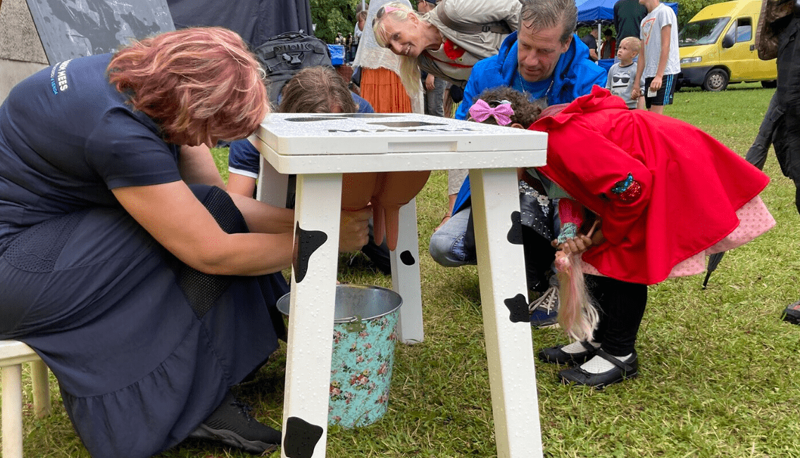Речь идет о доильном тренажере “Маали” Эстонского музея молочного хозяйства, соревноваться на котором наравне было предложено женщинам и мужчинам. Продолжительность дойки составляла 2 минуты.