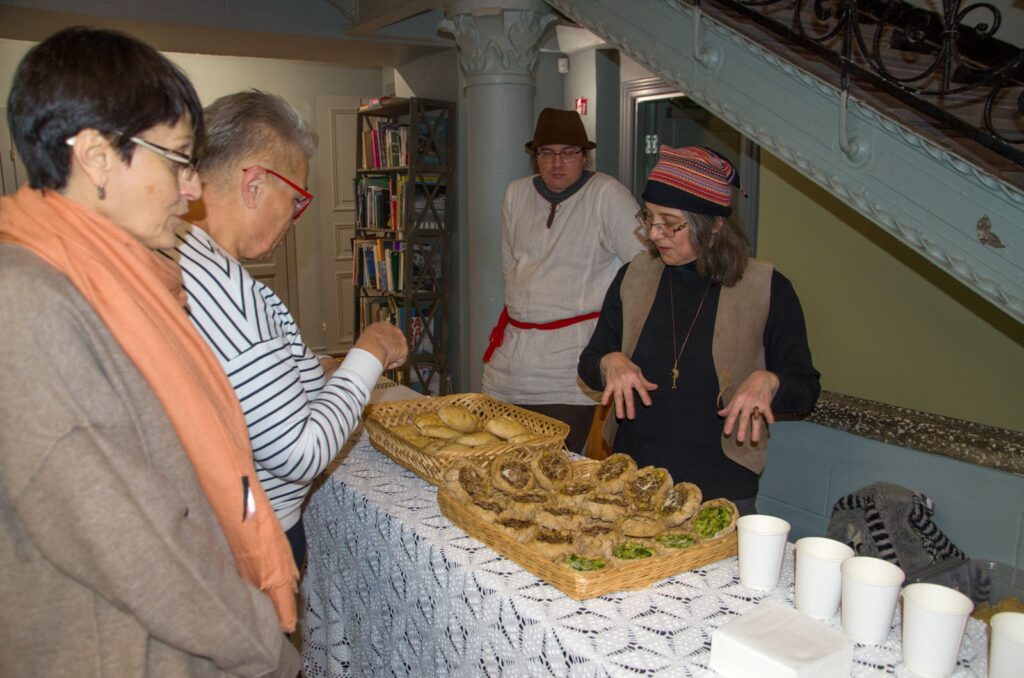 После первого фильма в перерыве можно было перекусить в Народном кафе – по пятницам оно работает в «Доме Ингрии» на Вакзали, 19, а по субботам с 16:00 – в NART. Гостям предлагалось отведать водские кислые щи «Рокка», удмуртские ржаные пирожки «перепечи», сладкую выпечку с вишней, яблоком и корицей, а также ароматный копорский чай.