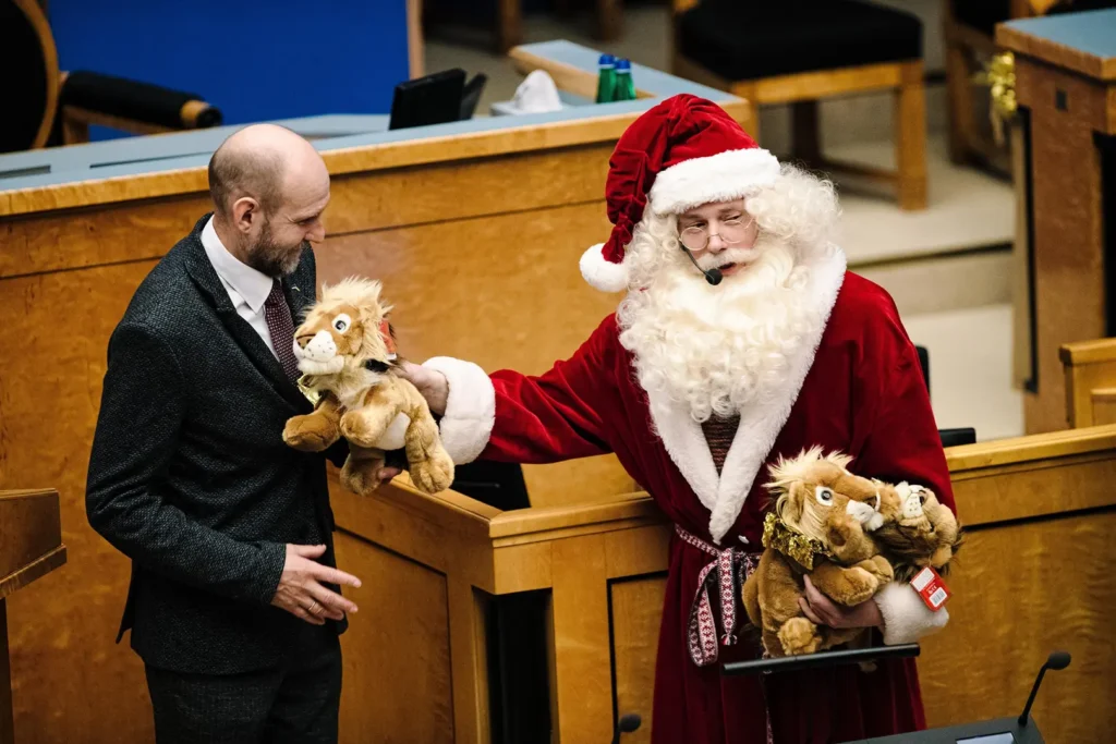 Последнее перед новогодним перерывом заседание Рийгикогу по традиции посетил Дед Мороз, который вручил народным избранникам подарки.