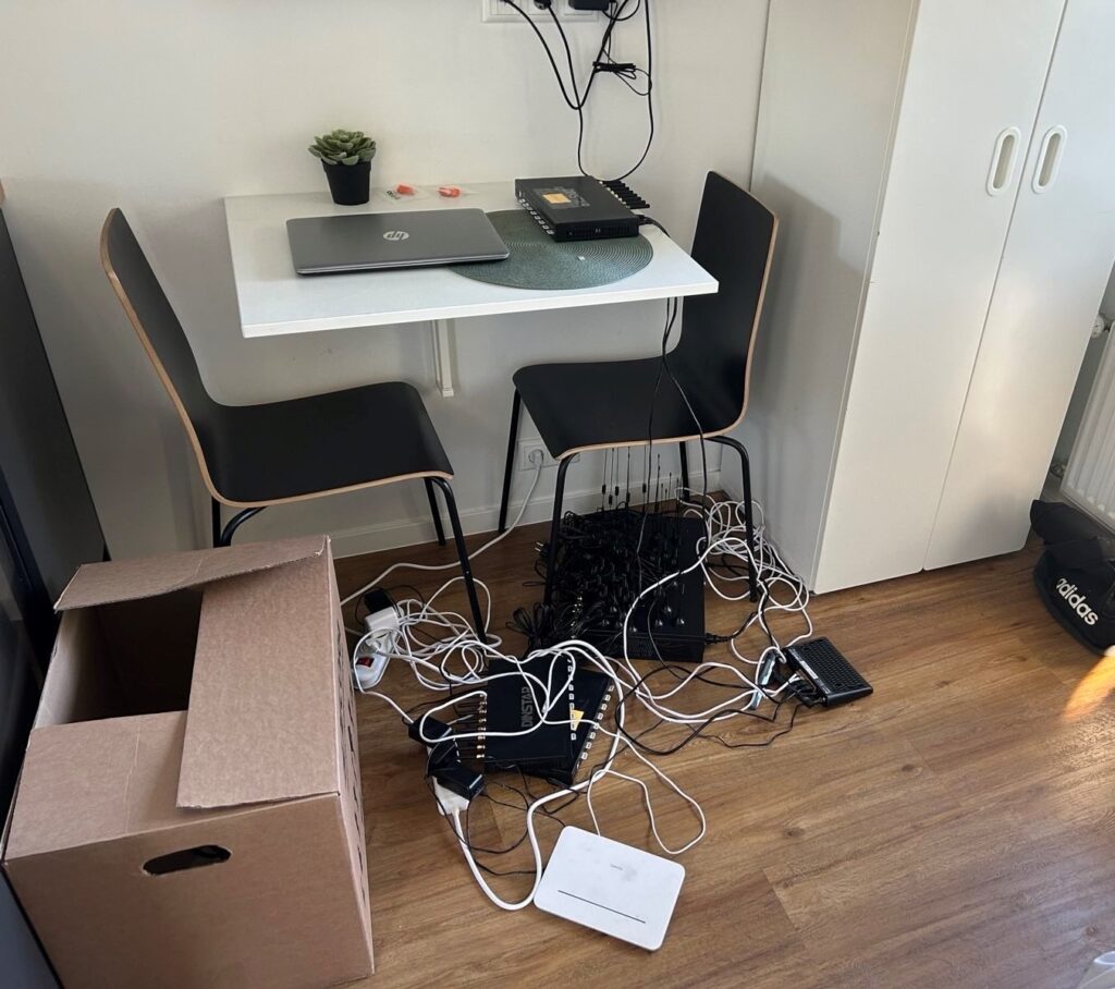 Во время обысков криминальная полиция обнаружила технические устройства, которые позволяли одновременно совершать десятки автоматизированных мошеннических звонков, а также компьютер, роутеры и сим-карты оператора. В тот же день молодые люди были задержаны в качестве подозреваемых.