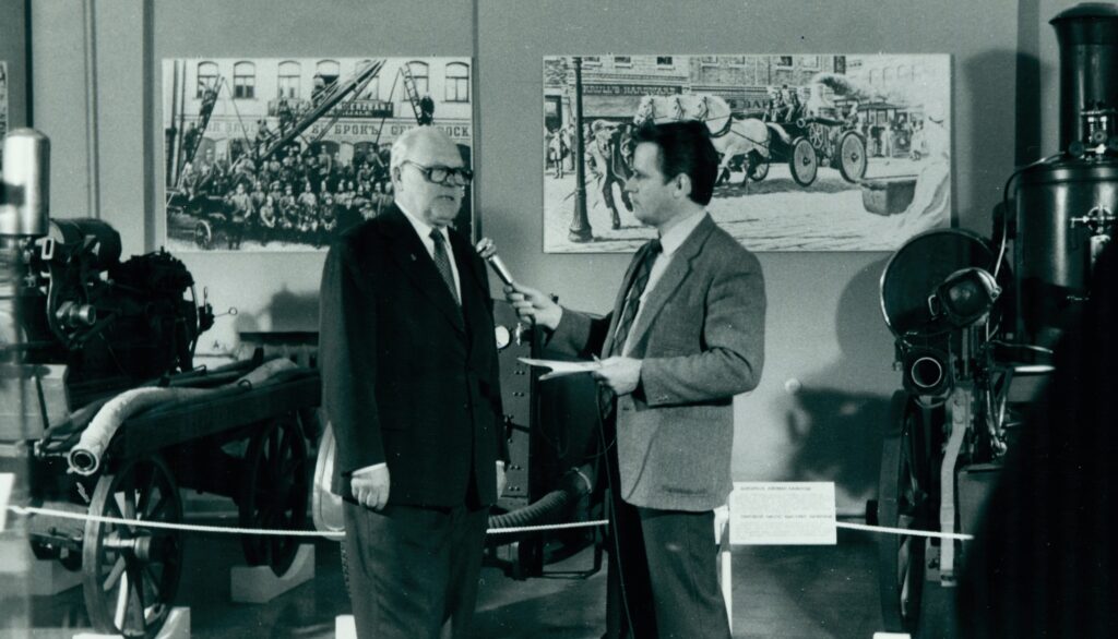 Первый директор музея Яан Ваарманн даёт интервью. Фото: Эстонский музей пожарного дела
