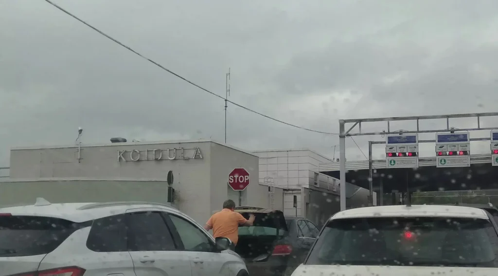 Вид, больше напоминающий площадку для продажи подержанных машин, встречает прибывающих на пограничный пункт “Койдула”. Официальная автостоянка Департамента транспорта заполнена до отказа, поэтому машины паркуют где попало – в лесу или на обочинах дорог.