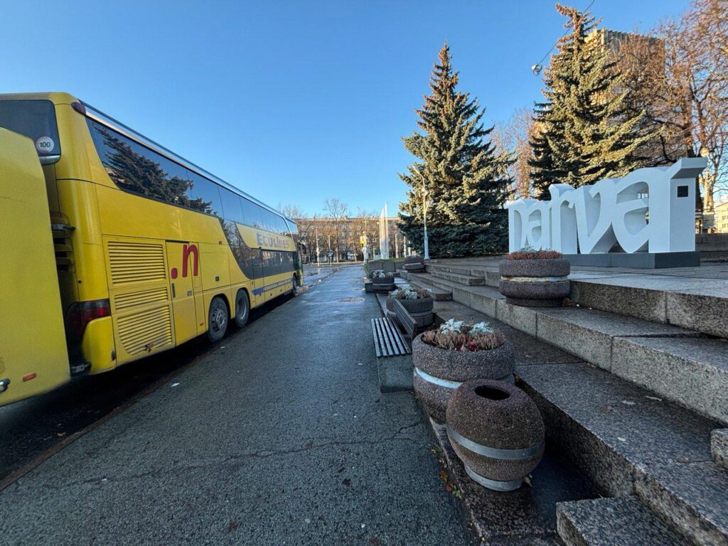 На автобусной остановке, откуда с границы отправляются автобусы в сторону Таллинна, сегодня вообще безлюдно и только один автобус — Ecoline. Однако водитель объясняет нам, что ждет пассажиров с российской стороны, 16 человек.