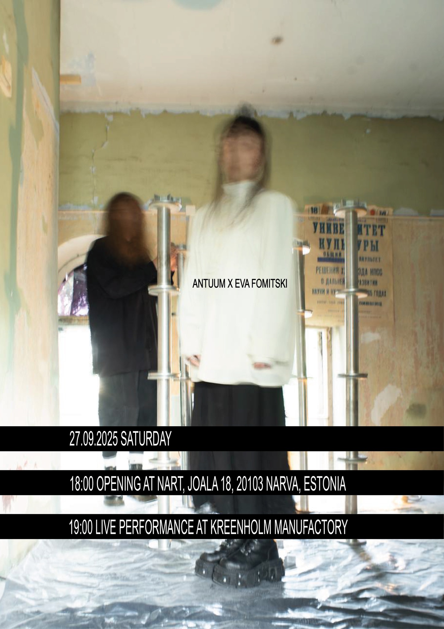 ГДЕ? Нарва, Йоала, 18, NART. Открытие инсталляции состоится в NART, после чего на территории фабрики Кренгольм состоится живое выступление ANTUUM.
