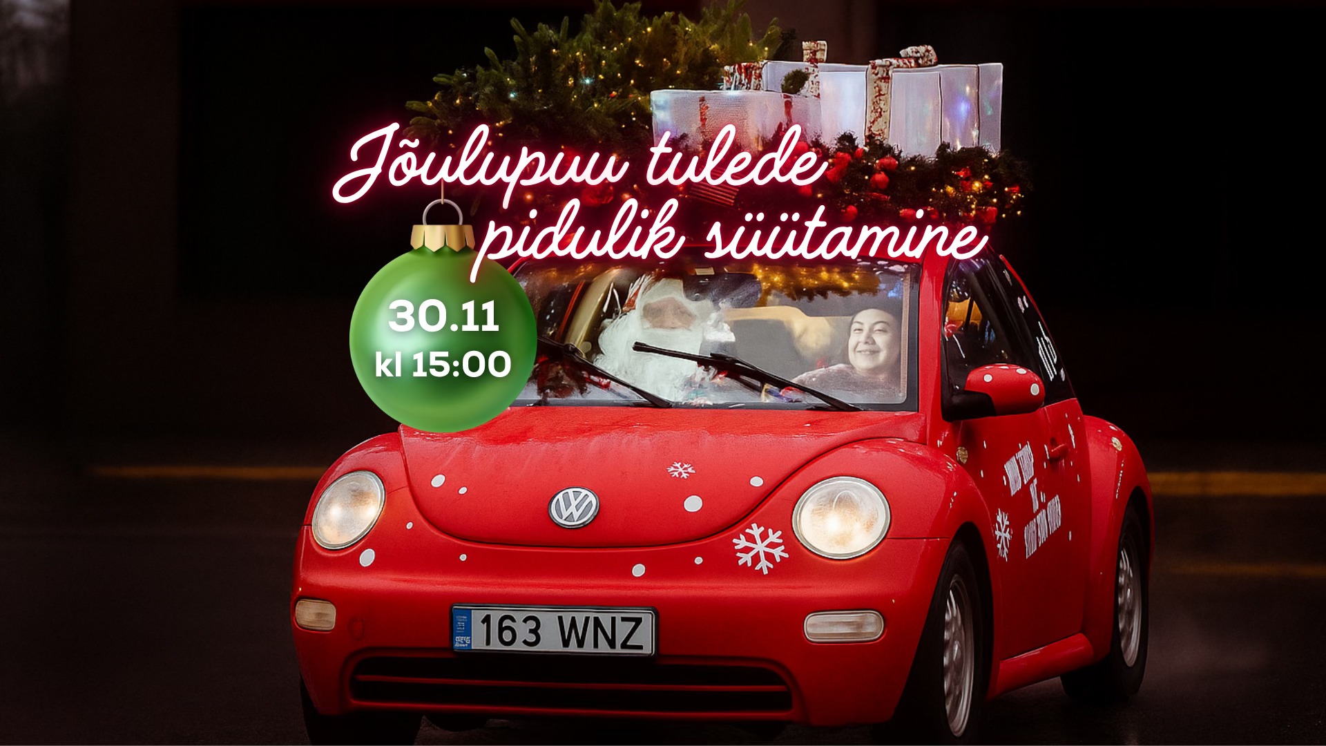 ЧТО? Зажжение огней на ёлке у Fama Keskus с Дедом морозом и его супругой.