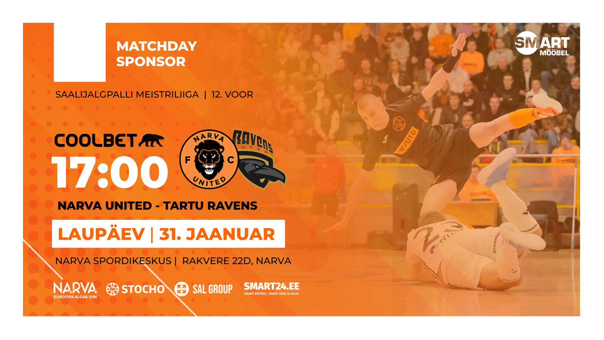 ЧТО? Матч 12 тура Чемпионата Эстонии по футзалу: Narva United / Tartu Ravens Futsal. Билеты: 3-5 €, дети до 12 лет – бесплатно