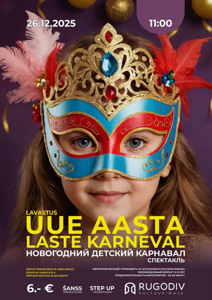 ЧТО? Танцевальная студия Step-Up и вокальная студия Шанс приглашают на спектакль «Новогодний детский карнавал». Продолжительность 1 час, 6-13+. Билет 6 €.