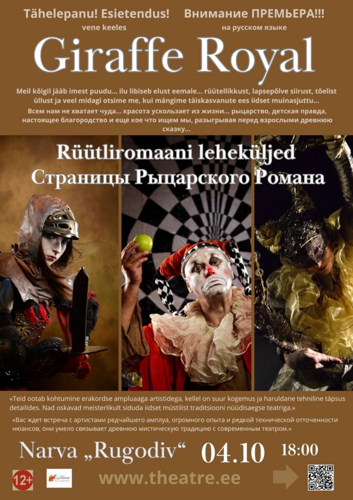 ЧТО? Нарва — осенняя столица Эстонии. Премьера спектакля «Страницы рыцарского романа» театра «Giraffe Royal». Открытие юбилейного сезона театра, посвящённого 40-летнему творческому пути основателей театра Станислава Варкки и Ларисы Лебедевой.