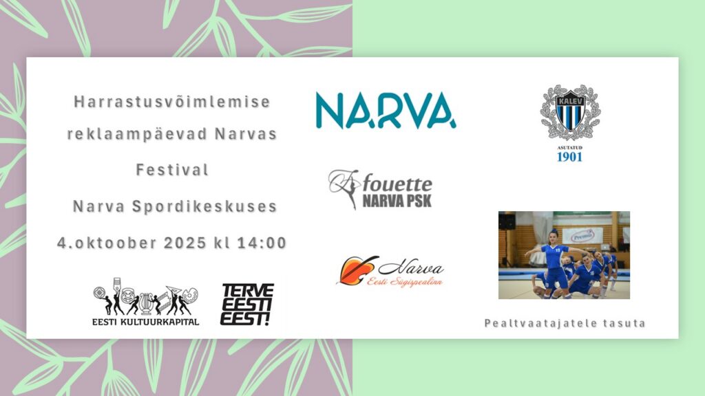ЧТО? Фестиваль гимнастики в Нарве. Выступят как местные коллективы, так и гости из разных уголков Эстонии. Вход бесплатный.