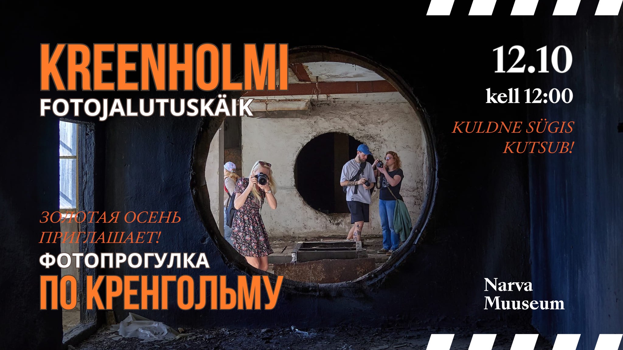 ЧТО? Фотопрогулка «Золотая осень в Кренгольме». Продолжительность фотопрогулки – 2,5 часа. Стоимость: 25 €/взрослый, 18 €/льготный.