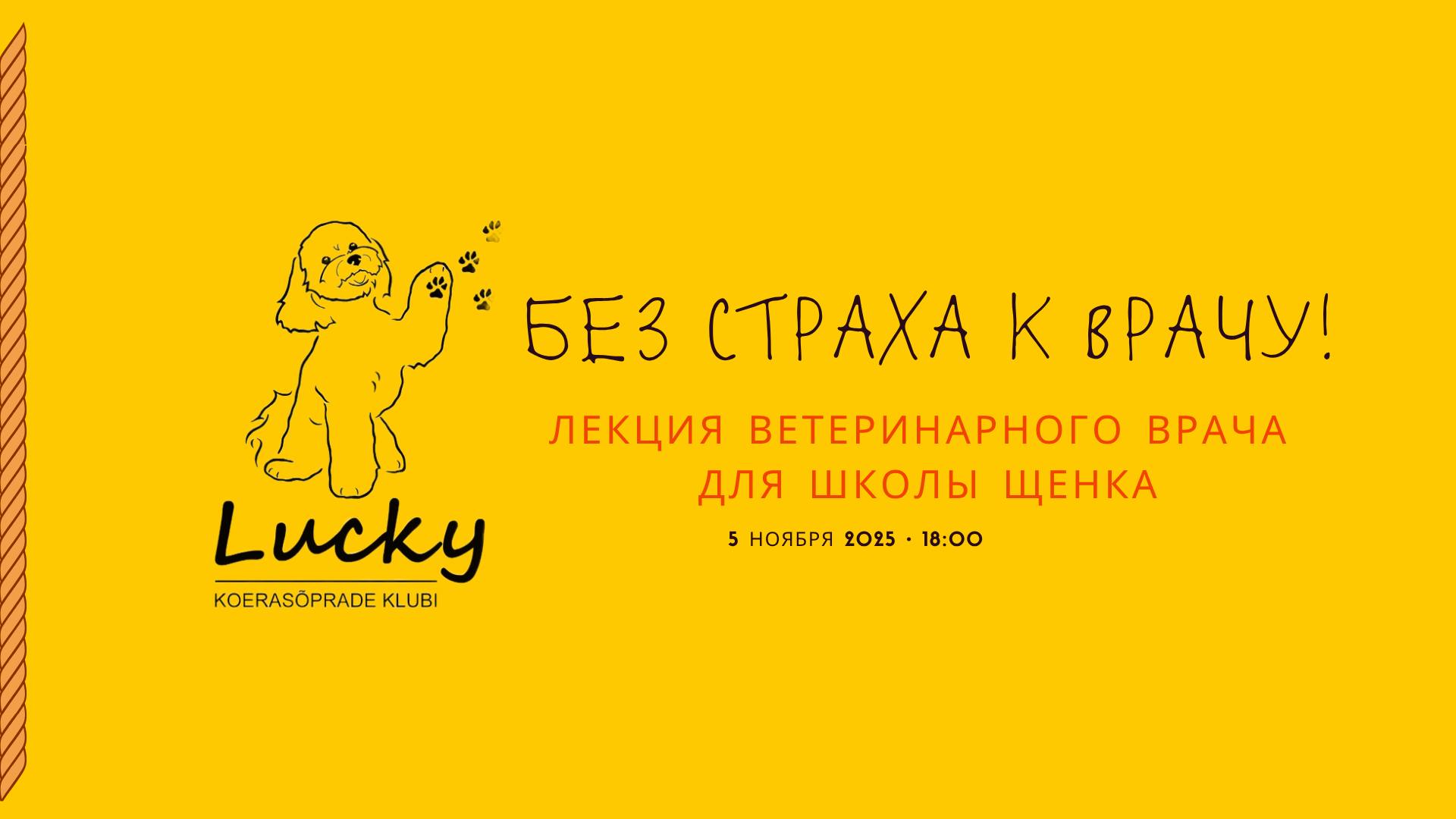 ЧТО? Лекция ветеринарного врача Яники Смоленцевой «Без страха к врачу: как с детства приучить щенка к ветеринару». Вход 5 €, нужна регистрация: https://fb.me/e/7cUBa7gGN