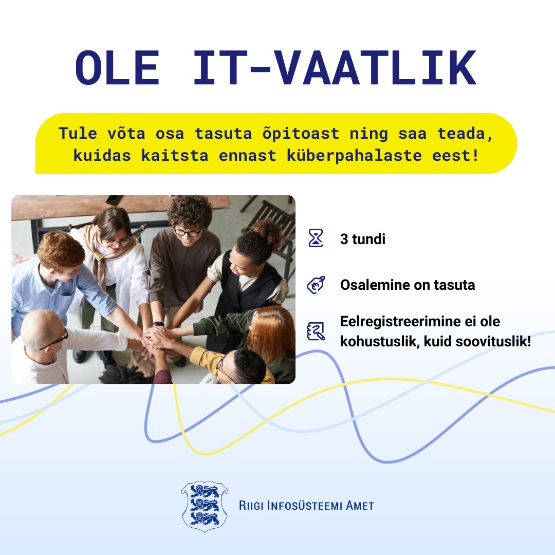 ЧТО? Департамент информационных систем (Riigi Infosüsteemi Amet) проводит серию мастер-классов по кибербезопасности для участников возрастной группы 45+. Бесплатно, желательна регистрация: https://forms.office.com/e/KWiyRtzKzA