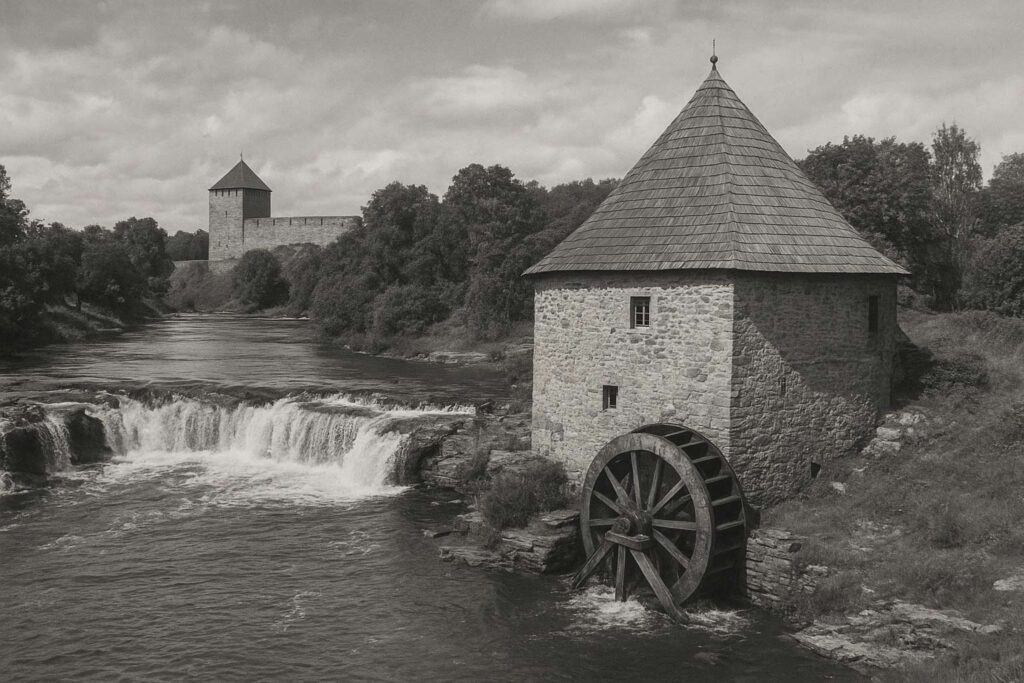 Одна из мельниц на нарвском водопаде, которая принадлежала Ордену и работала под его руководством. Эта мельница впервые упоминается около 1538 года. Другая мельница, по всей видимости, находилась на нынешнем Георгиевском острове и являлась лесопилкой, как и сам остров, они находились в частном владении. В самом городе находилась мельница, которую приводили в движение лошадьми. В хозяйственном отношении ее деятельность была основана на тех же самых принципах что и в Таллинне, т.е. помимо магистрата ее совладельцами являлись частные лица.