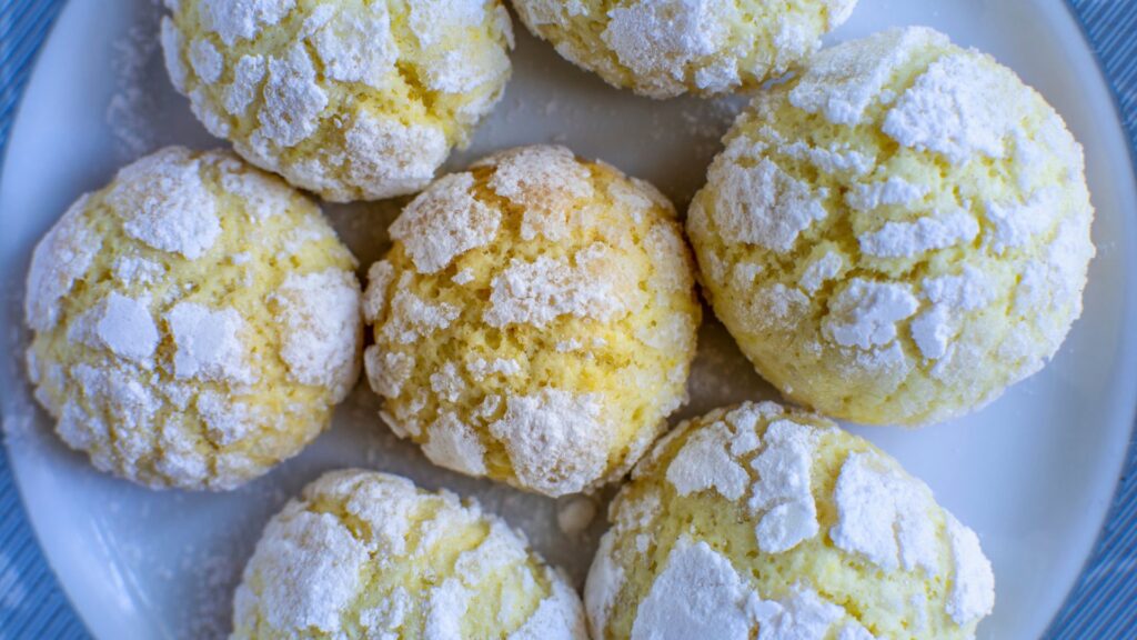 Шарики выкладываем на противень, выстеленный пергаментной бумагой на расстоянии друг от друга и выпекаем в разогретой до 180 ˚C духовке примерно 12-15 минут. Готовое печенье хранить в закрытом контейнере, чтобы не черствело.