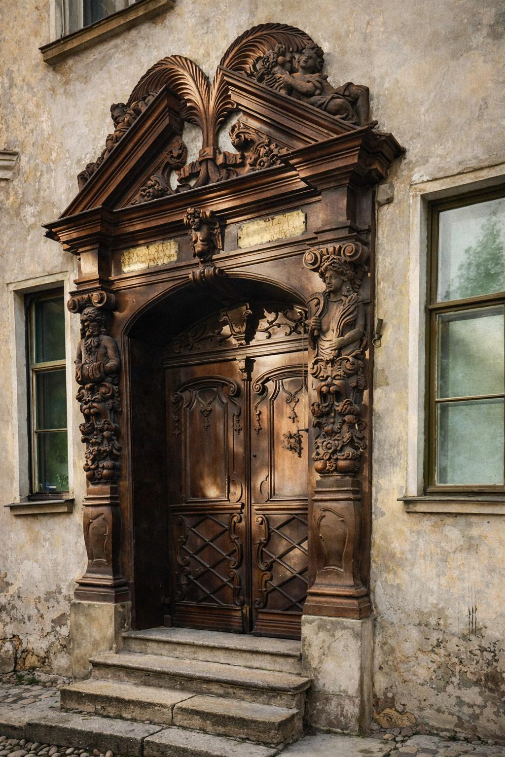 Снаружи дома украшались богатыми порталами, коваными деталями, красивыми решетками, флюгерами. Портал жилого дома по ул. Коду 2. Начало XVIII века. Изображение из коллекции нарвского гида и историка Александра Опенко