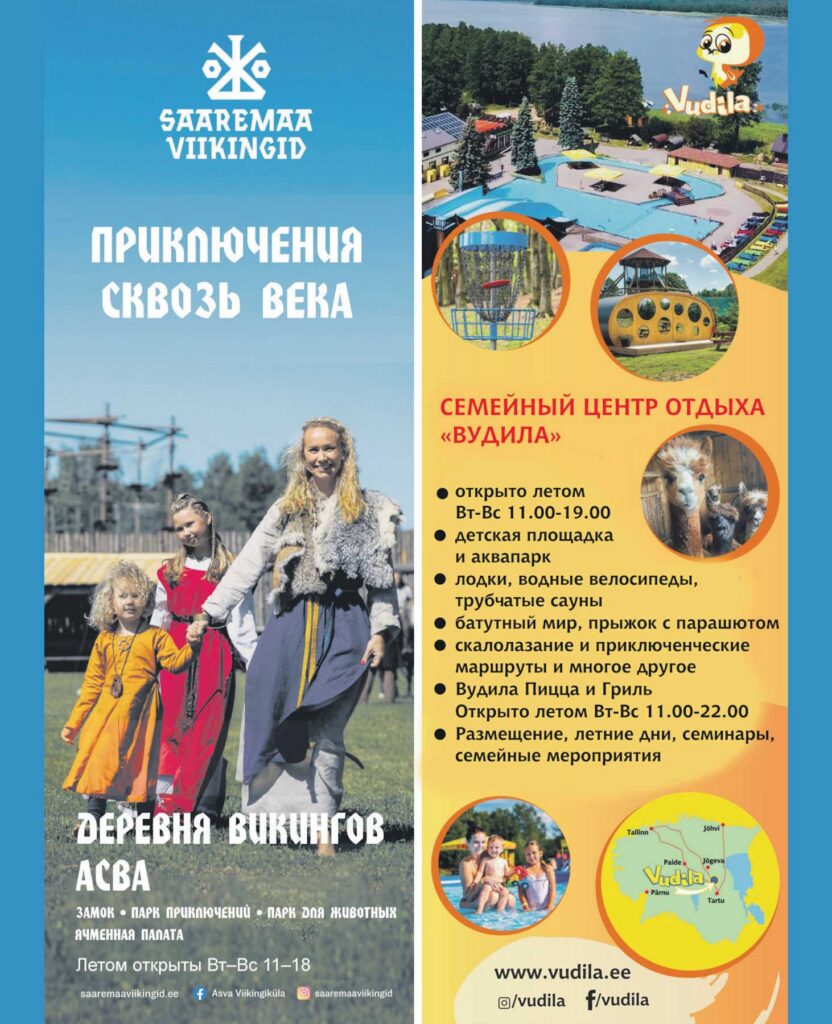 Самый крутой в Эстонии аквапарк под открытым небом в семейном центре “Вудила” ждет вас! Водные горки на трех разных уровнях и быстрая 60-метровая водная труба. Кроме того, бассейн с речным течением для купания, а также отдельные бассейны для детей и малышей. В прохладную погоду согреют бани-бочки!