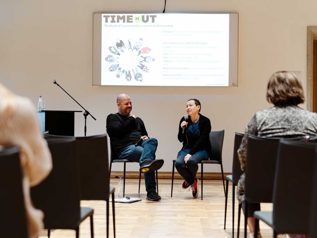 Поскольку в последнее время коммуникация между людьми становится сложнее, организаторы Недели Северных пригласили основателей финской Академии диалога, чтобы научиться общаться более эффективно. Эксперты из Финляндии рассказали о методе ведения диалога «Time-Out».
