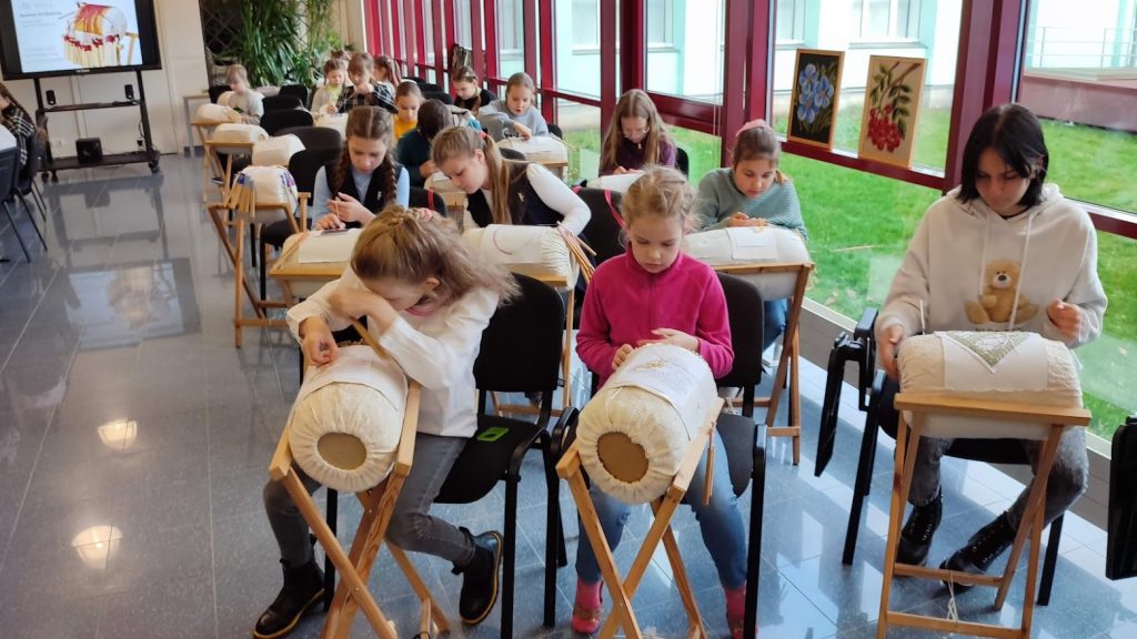 Интересно, что техника кружевоплетения на коклюшках была завезена в Эстонию еще в 17 веке шведами. После второй мировой войны в Эстонии эта техника была практически забыта. Возрождение этого вида рукоделия в Эстонии началось с Нарвы в 1990 году, когда Ольга, мастер по кружеву с профессиональным образованием Вологодской школы кружева, набрала первую группу взрослых учеников. И до сих пор единственная в Эстонии школа плетения кружева на коклюшках (теперь и для детей) находится в Нарве. Здесь учатся дети 6-18 лет – как начинающие, так и продолжающие обучение. И двери всегда открыты для тех, кто проявляет интерес к этому виду творчества.