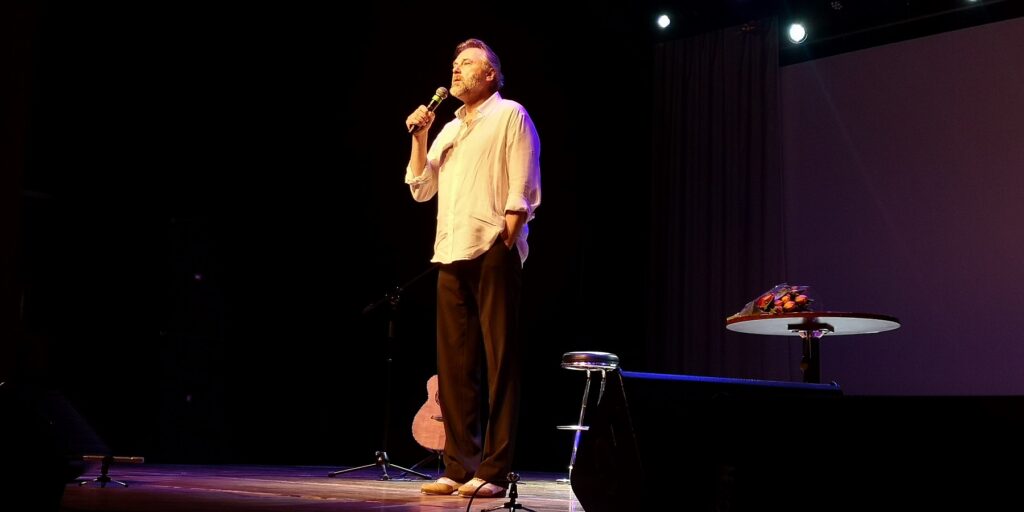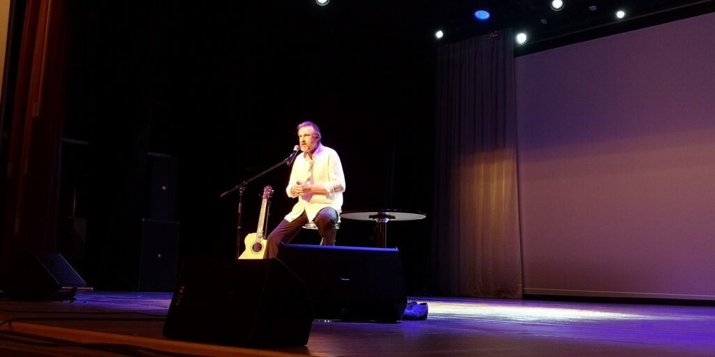 Как сказал Александр в начале вечера, он приехал в Нарву с желанием душевно пообщаться. Конечно, он взял гитару и танцевальные ботинки, но в первую очередь хотел поговорить с публикой про театр и кино, про танец и жизнь. Актер рассказал об учебе в театральном институте, становлении в профессии, обучении степу в Америке, о том, как занялся фотографией. Зрители передавали из зала записки с вопросами – о ролях, отношении актера к проблемам современного мира и просьбами исполнить песни или танцевальные номера.