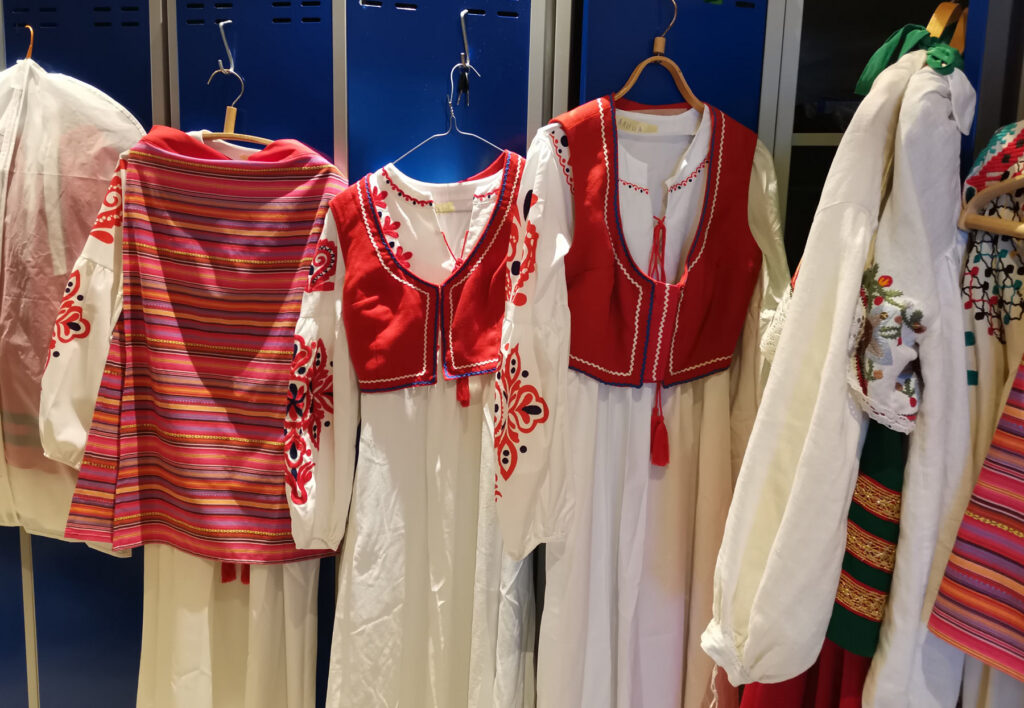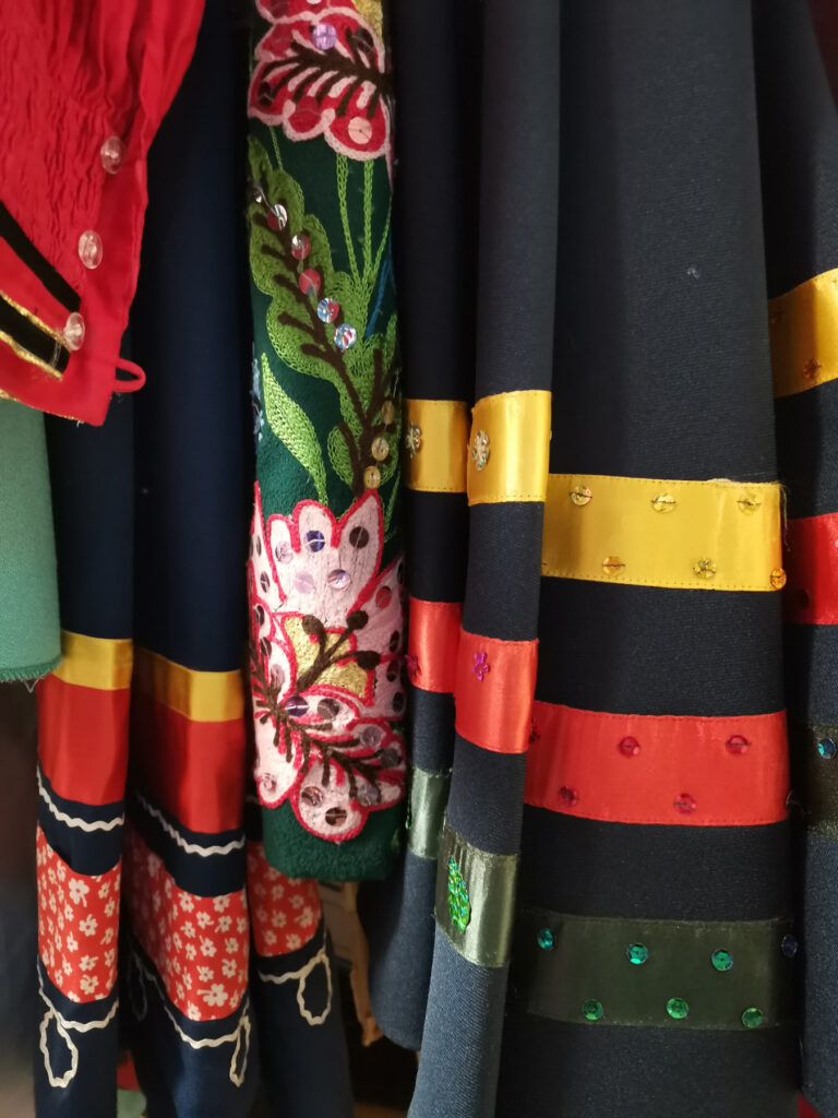 Есть в костюмерной платья для грузинского танца, выполненные в мастерских Тбилиси, эстонские народные костюмы, в которых нарвитяне выступали на Праздниках танца в Таллинне.