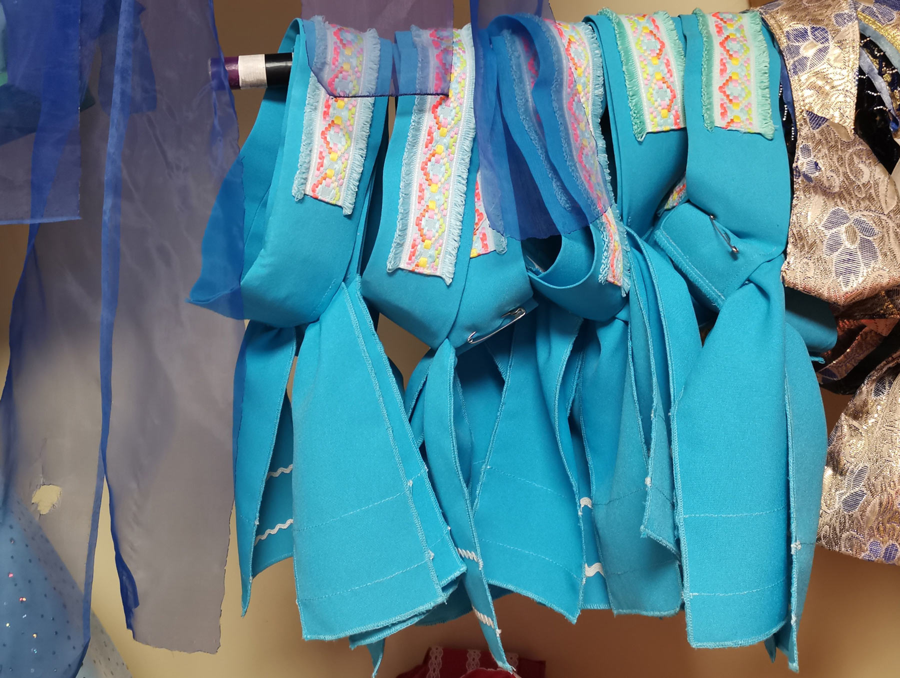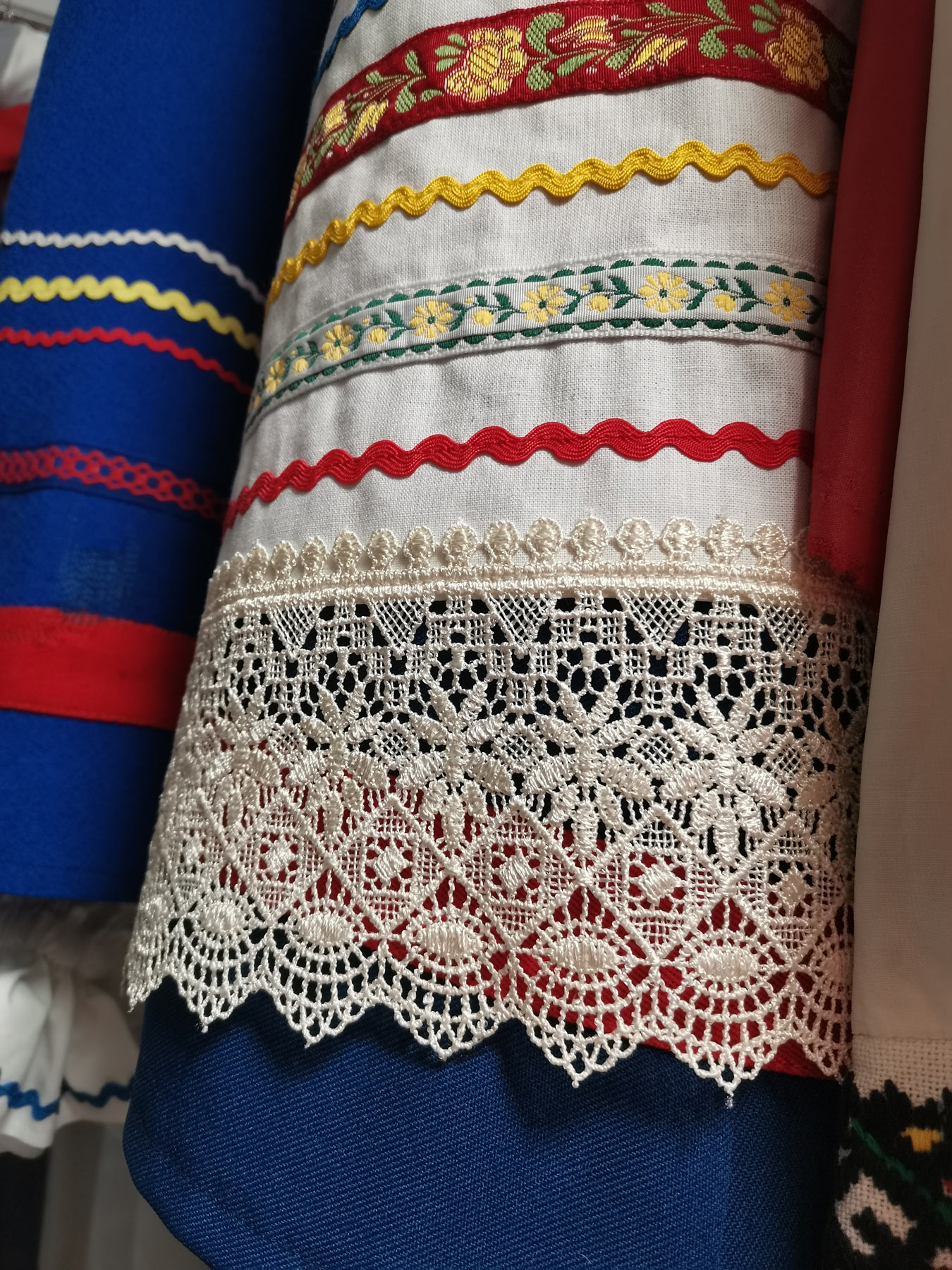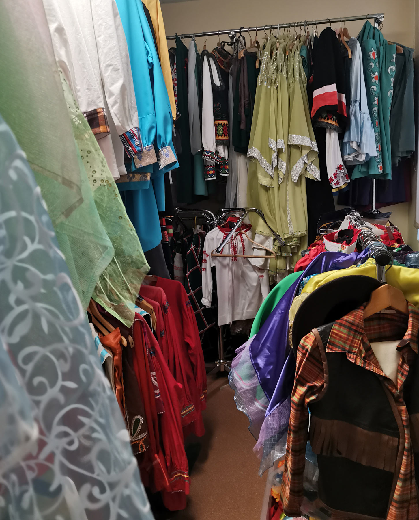 Есть в костюмерной платья для грузинского танца, выполненные в мастерских Тбилиси, эстонские народные костюмы, в которых нарвитяне выступали на Праздниках танца в Таллинне.
