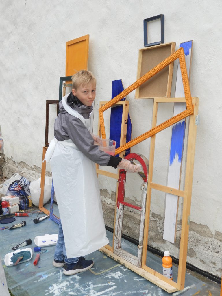Еще одним арт-объектом стала большая композиция, составленная из старых картинных рам, сделать ее красивой и яркой художникам помогли посетители праздника.