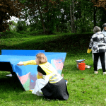 Рисовали и создавали шедевры прямо на глазах зрителей. Педагоги Вера Ланцова и Анне Пяртель разрисовывали старый теннисный стол по мотивам живописи своего любимого каталонского художника-абстракциониста Жоана Миро.