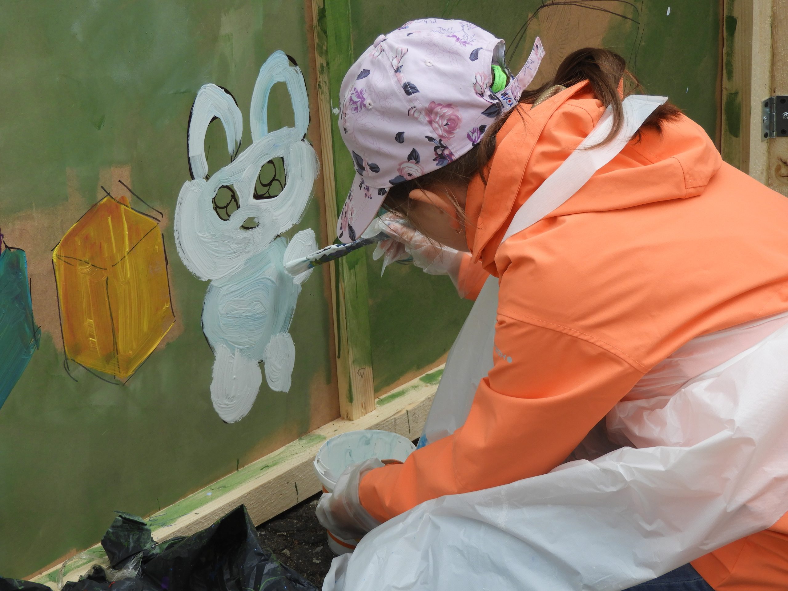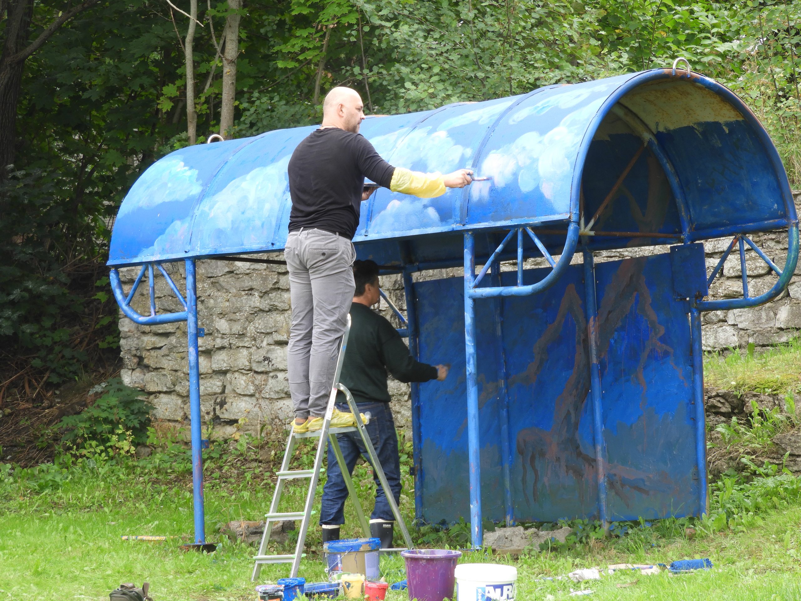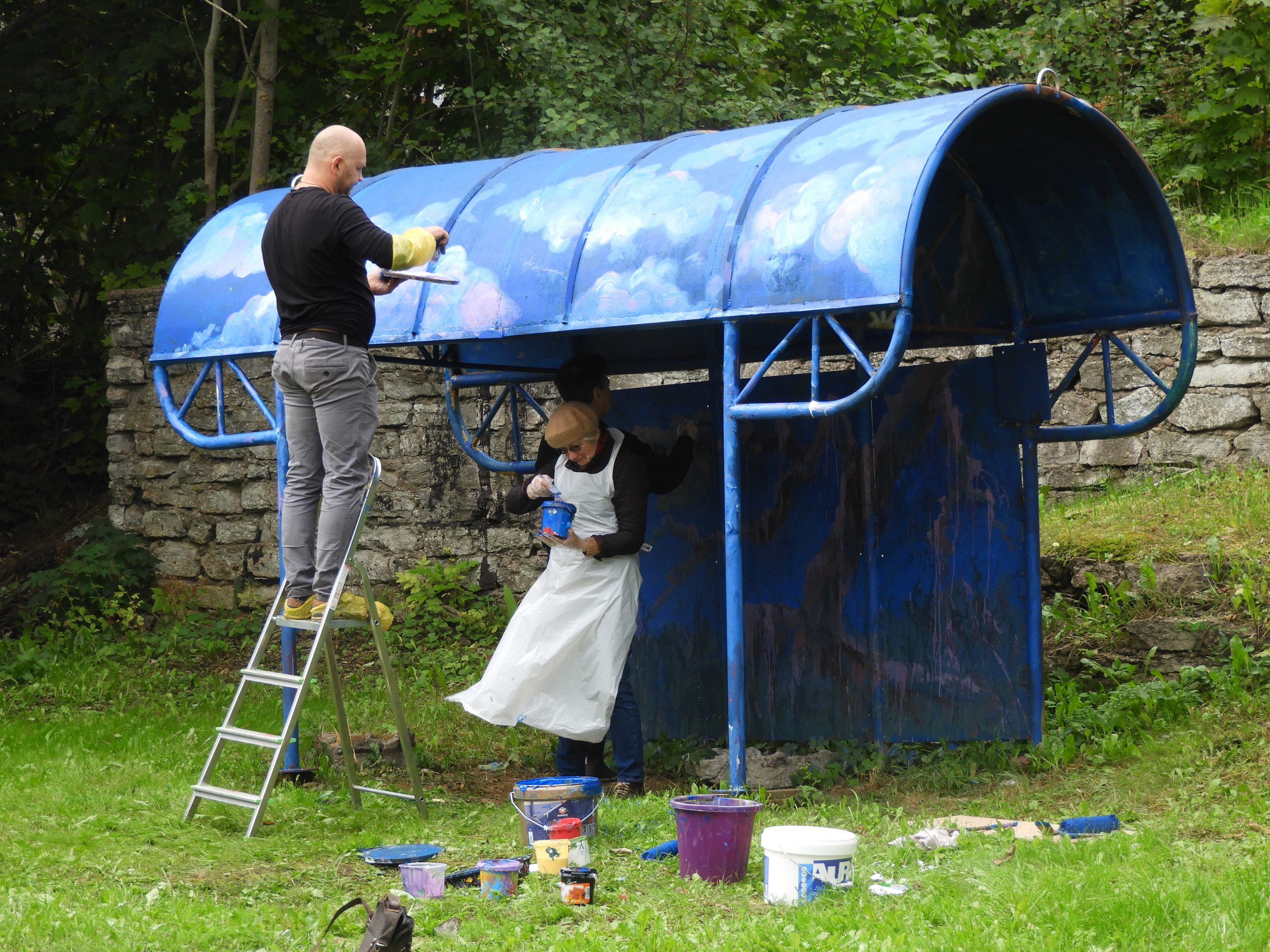 Другая группа художников создавала арт-объект в виде очертаний жилого дома. Граффити на его стены наносили мастера стрит-арта Мария Самбуко и Тимур Хусаинов, а изображение внутреннего интерьера на том же объекте, но с обратной его стороны, могли наносить все желающие под руководством художников Ирины Юголайнен, Жанны Голубцовой и Альберта Белякова. Другим арт-объектом послужила установленная позади галереи автобусная остановка.