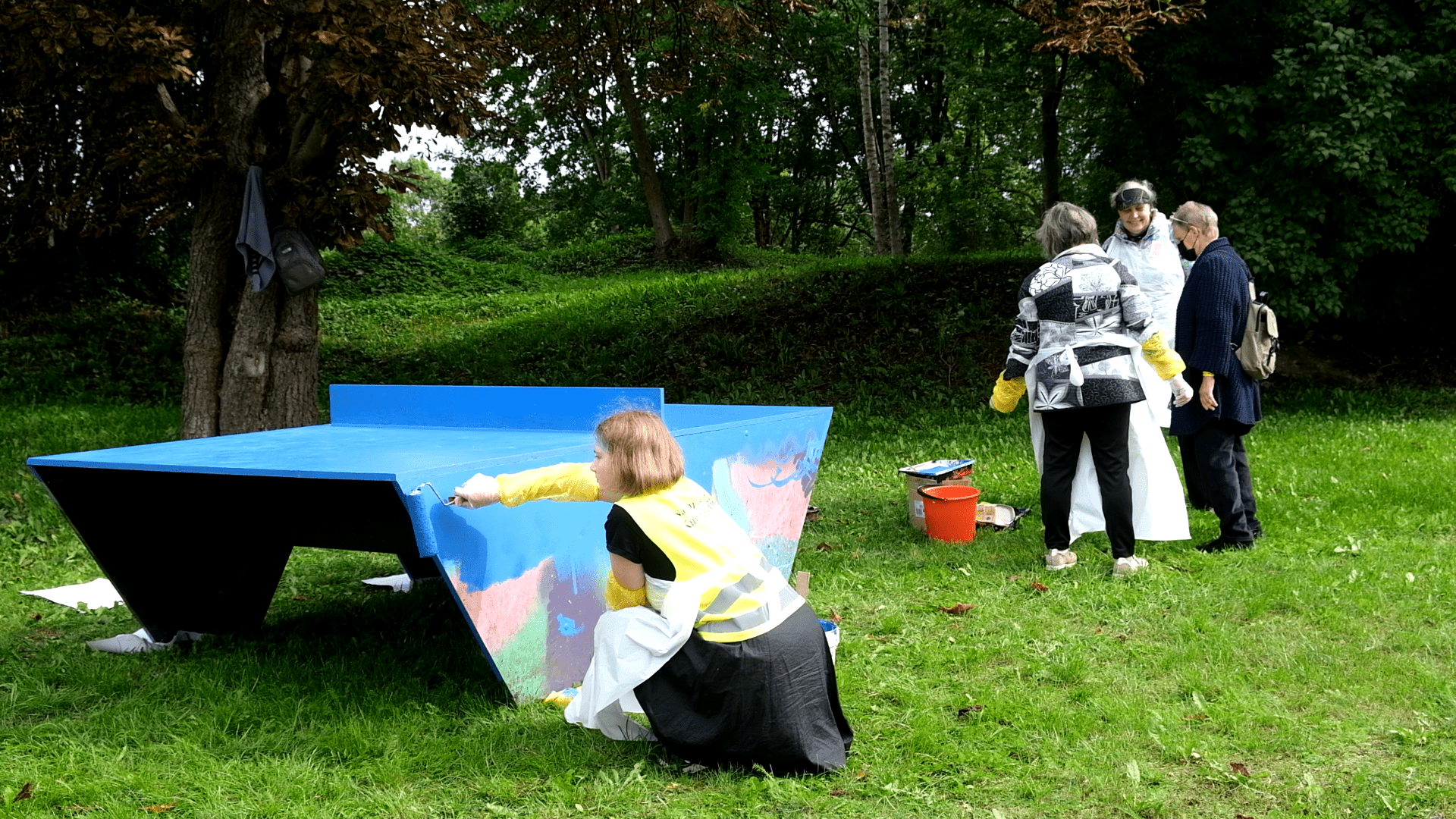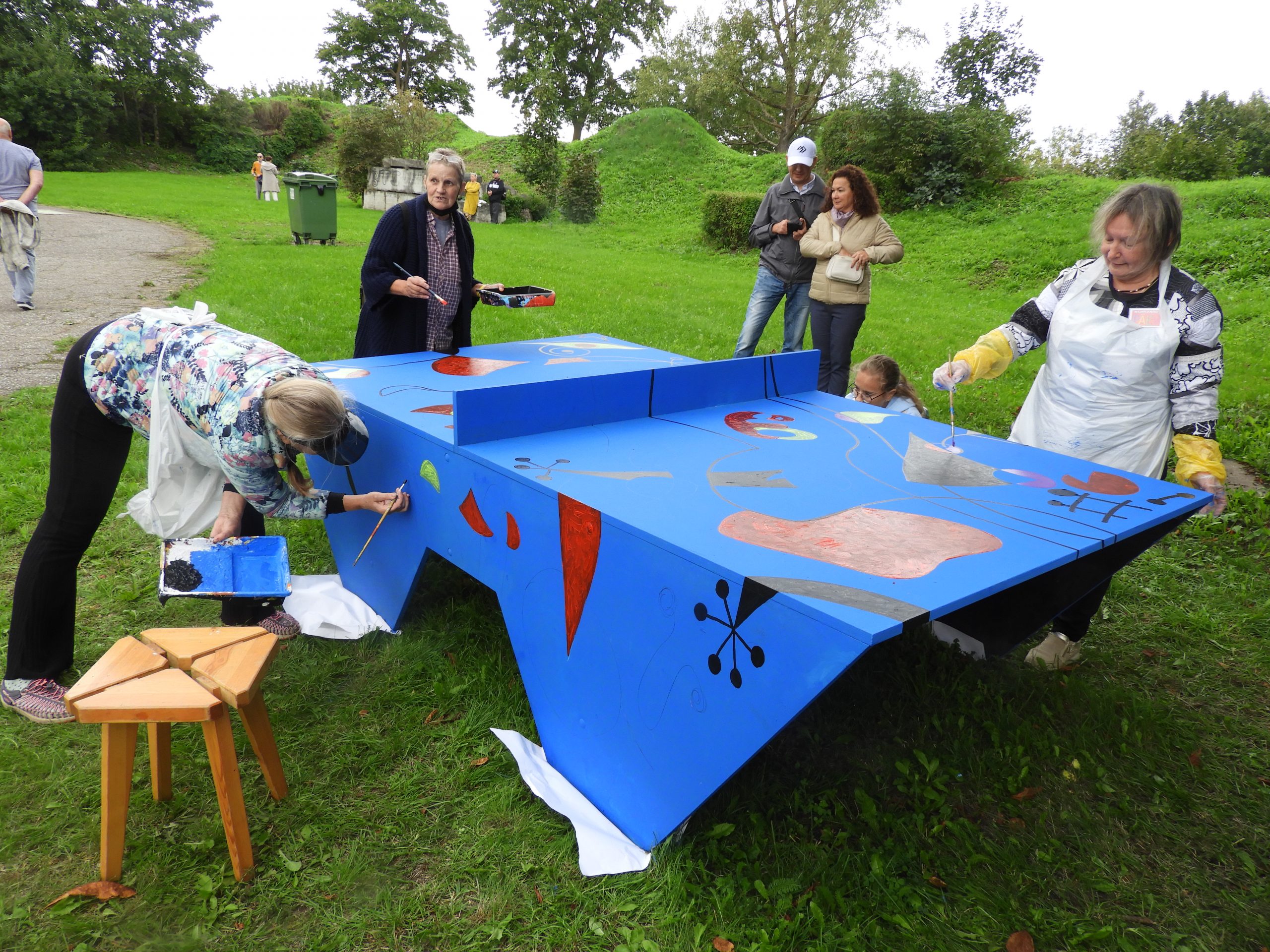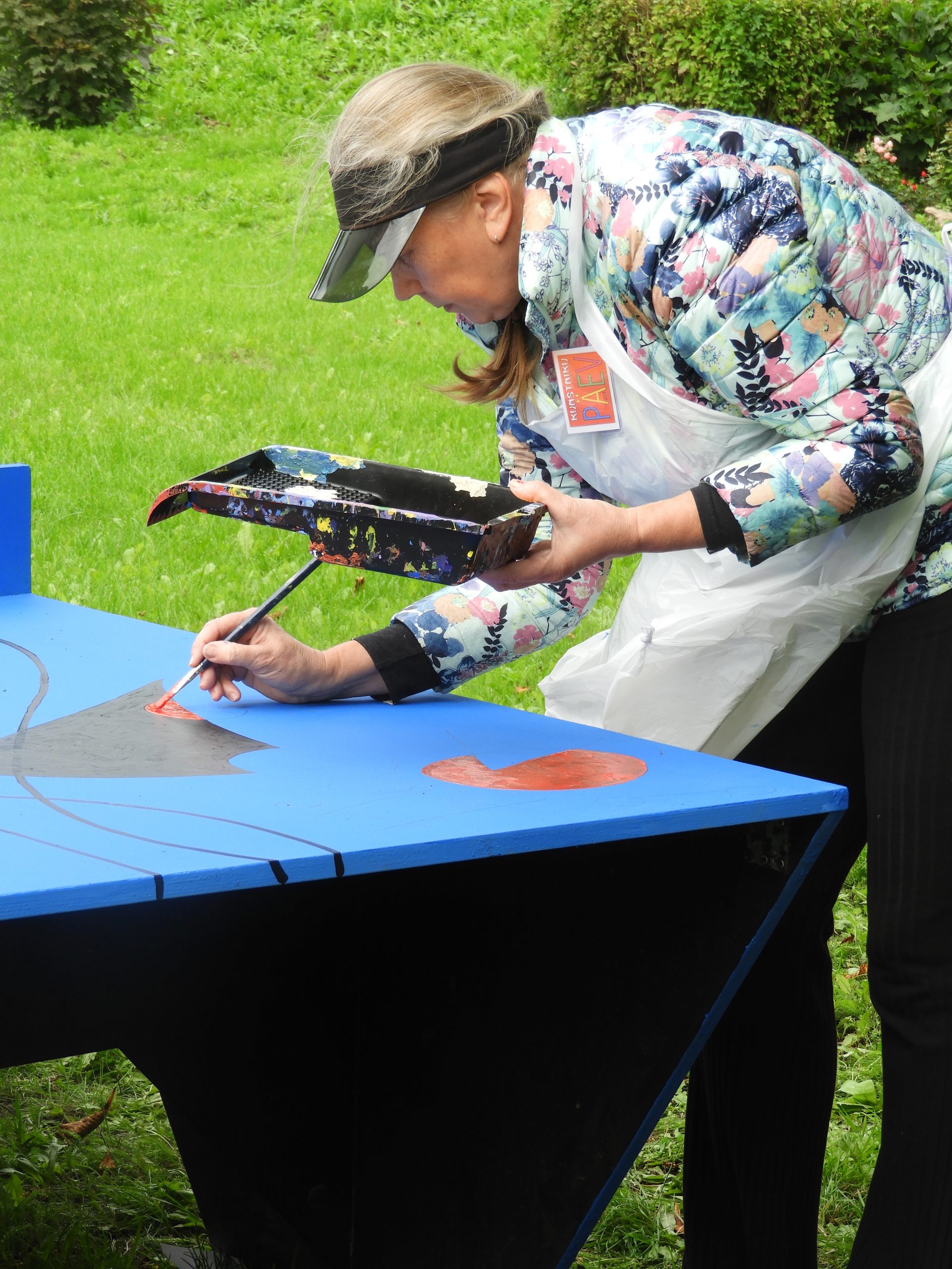 Рисовали и создавали шедевры прямо на глазах зрителей. Педагоги Вера Ланцова и Анне Пяртель разрисовывали старый теннисный стол по мотивам живописи своего любимого каталонского художника-абстракциониста Жоана Миро.