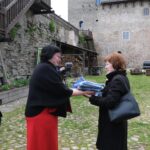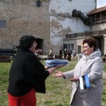 Вручение началось с приветственной речи мэра Нарвы Катри Райк, праздничную эстафету подхватили участники местного танцевального коллектива. А затем руководители нарвских КТ из рук Катри Райк и председателя городского собрания Владимира Жаворонкова получили сине-черно-белые полотнища, которые, надо полагать, будут придавать Нарве ещё большей праздничности по особым дням календаря.