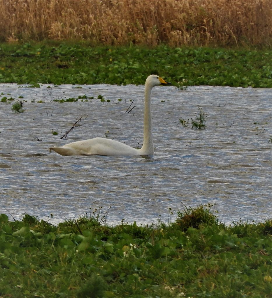 Облюбовавший большую лужу у Ольгина лебедь, возможно, ждет попутчиков для дальнего перелета.